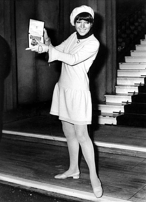 Ultimately, I chose Mary Quant as my main source of inspiration. It was the way she incorporated zippers in the front of wool dresses that really caught my eye. I loved the athleisure feel of her quarter-zip dress she wore to Buckingham Palace to receive her O.B.E. award from the Queen.